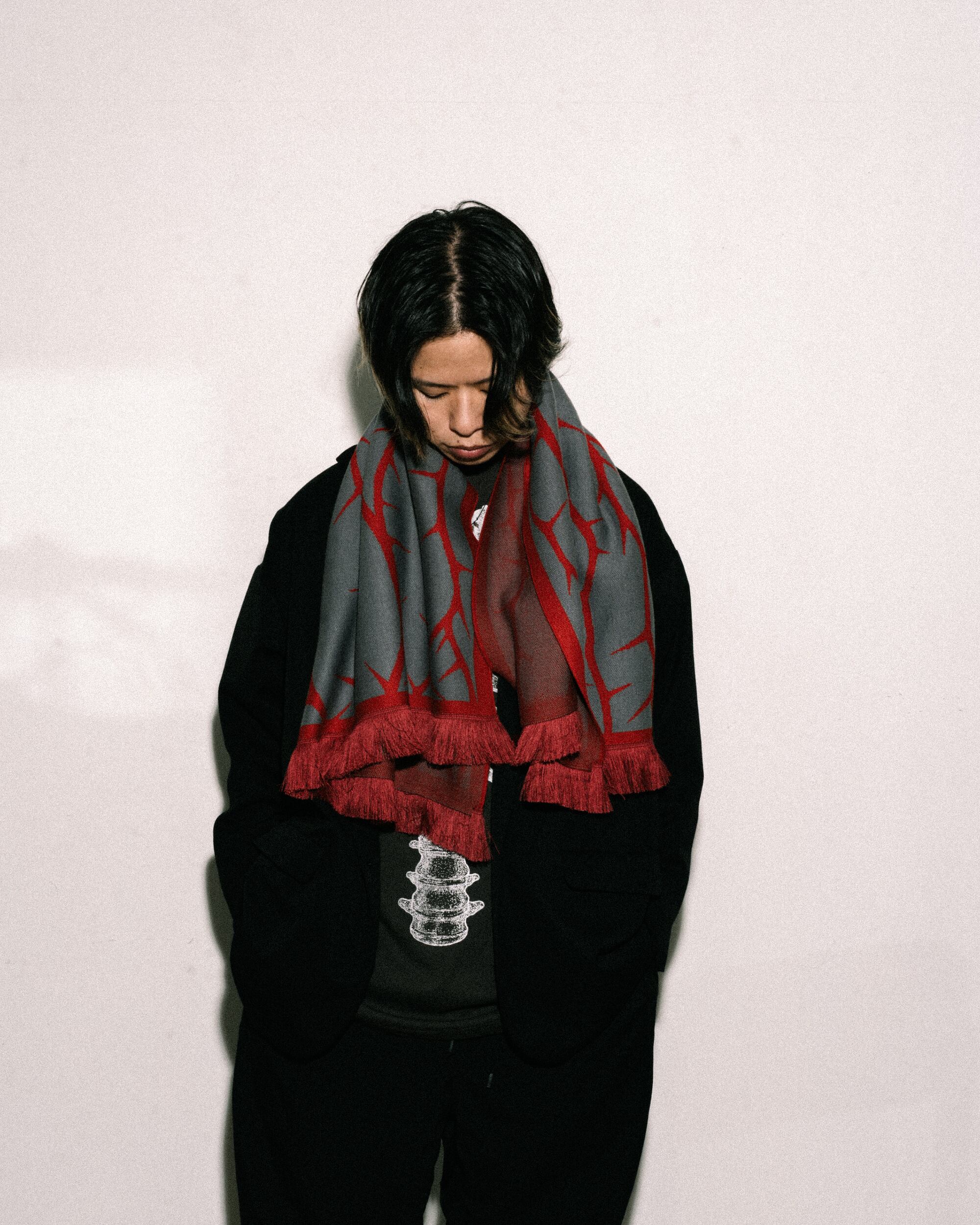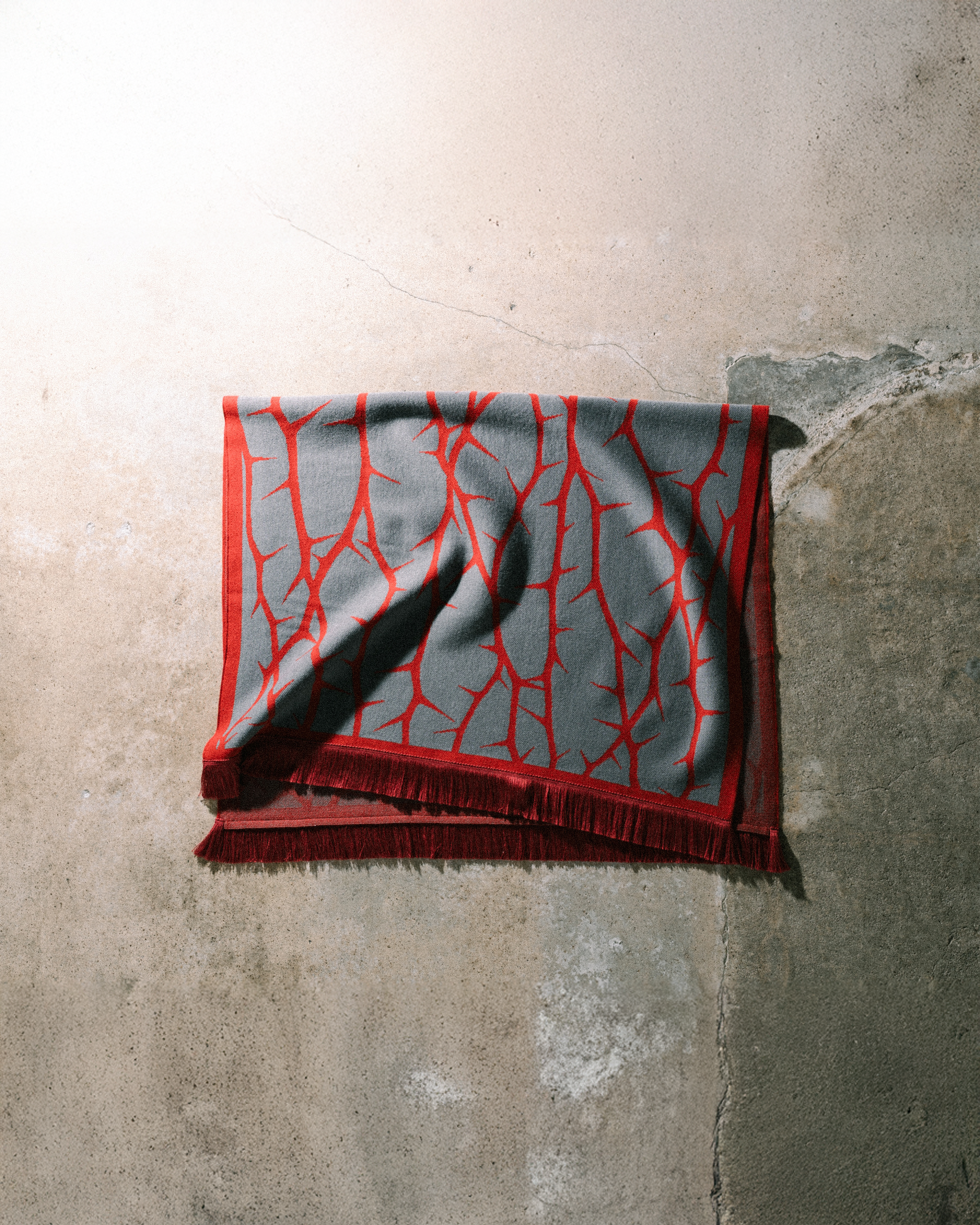 棘が群れをなしたグラフィックを織り柄として表現しました。