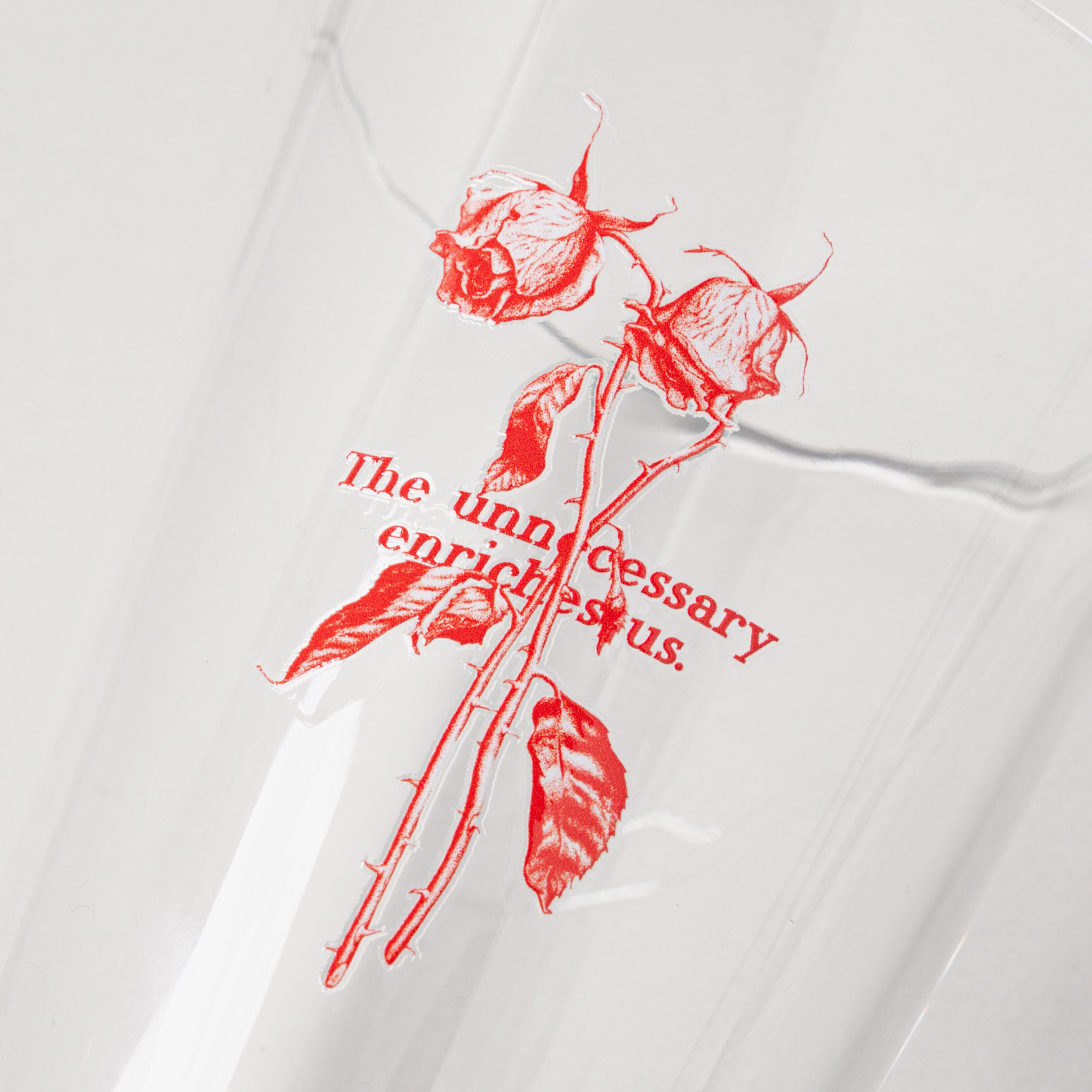 ガラスの透明度を活かした赤のグラフィックが、