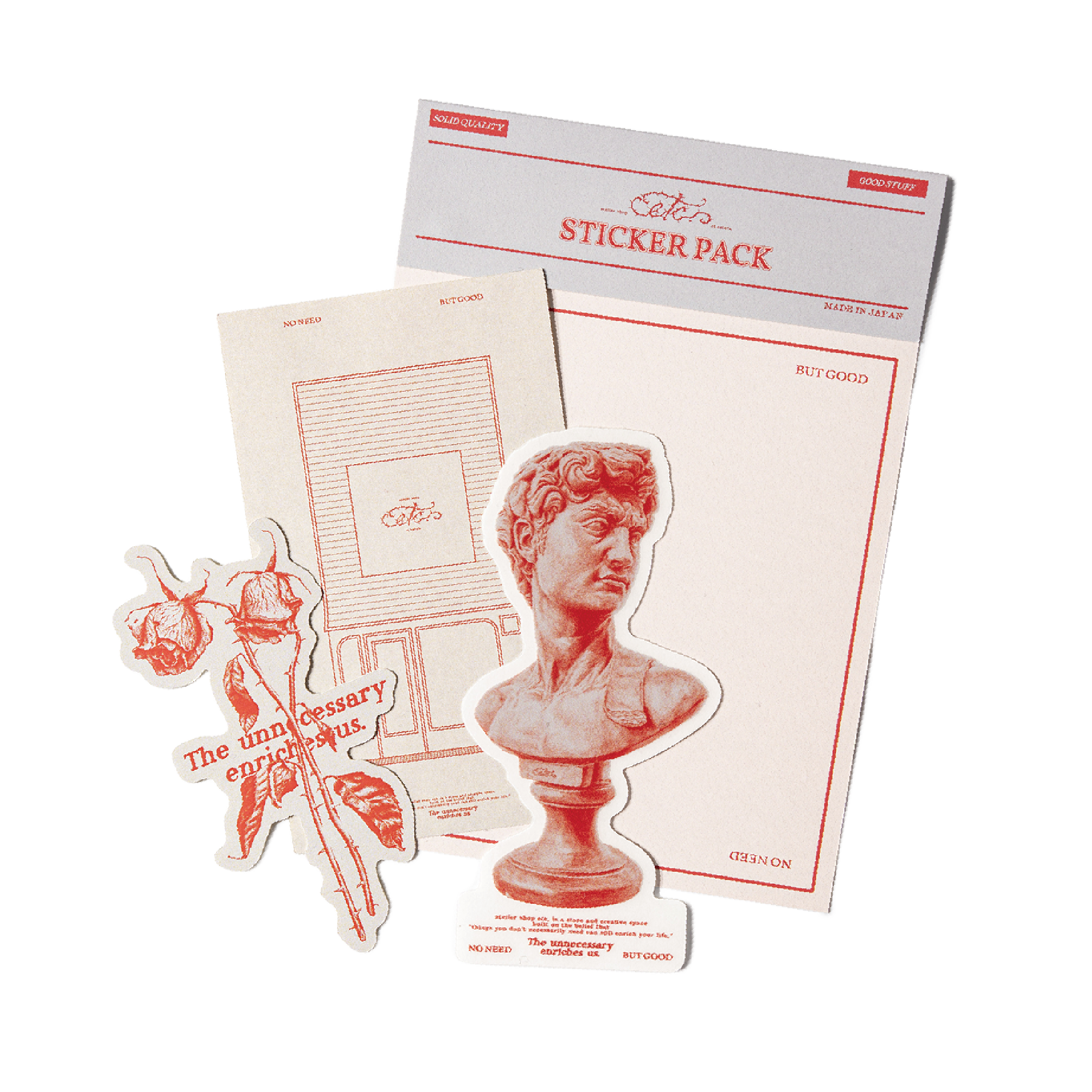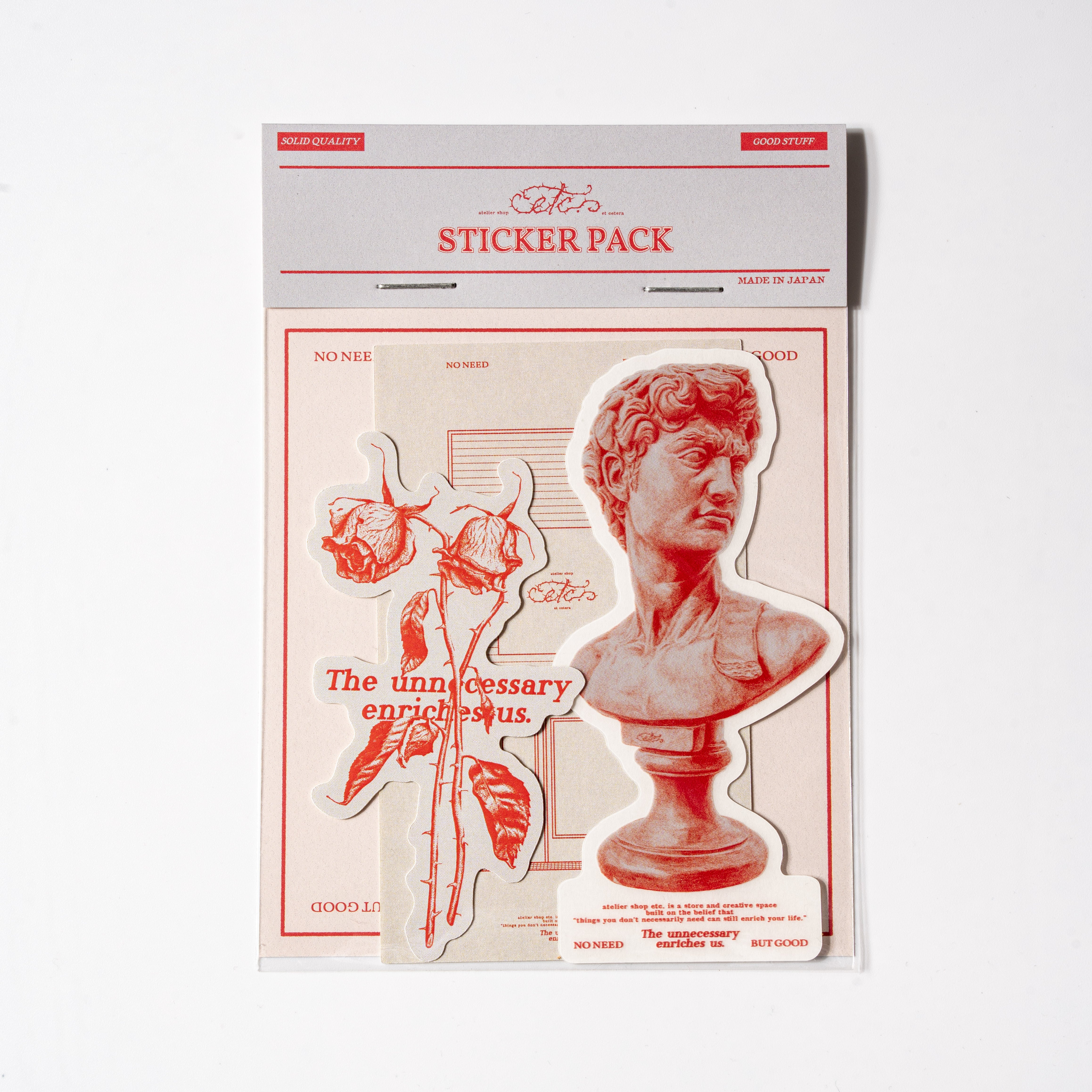 etc.を象徴する3つのグラフィックを、それぞれ最適な素材で仕上げたステッカーパック。